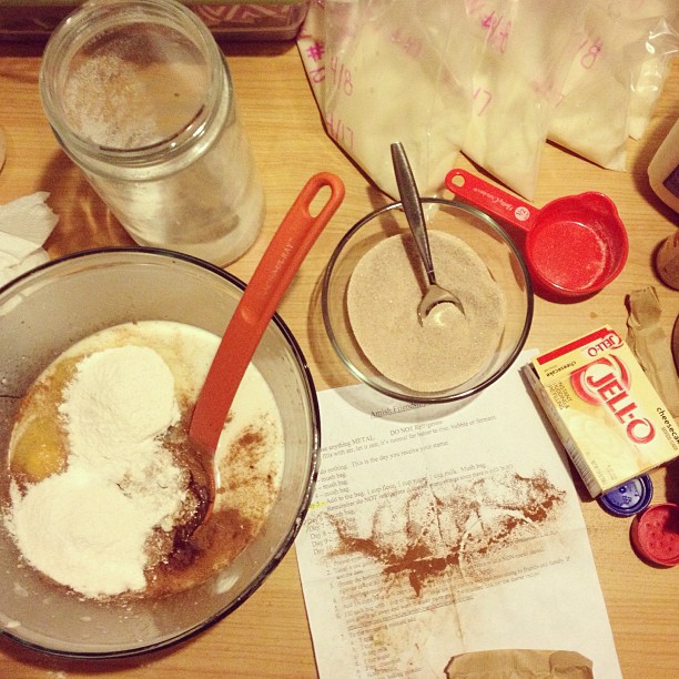 Woohoo! My friendship bread turned 10 days old yesterday! If you have ever made friendship bread before you know what that means...time to bake! If you haven't heard of friendship bread (don't feel bad...I hadn't until 10 days ago) I will tell you a bit about it! Someone gives you a starter. My aunt gave me one on Easter (you can read more about that here). The starter comes with some instructions that you have to follow for the next 10 days. Most days you just have to mush the bag around to keep the ingredients mixed up. On day 5 you have to add a few things to the bag, and keep mushing. On day 10 you get to add some more ingredients, divide some of the mixture into 4 bags to give to your friends and family! The rest of the mixture is added to and baked into some very yummy bread! A slice of bread seems like the perfect way to celebrate my 100th blog post! Yes, you read that right...this is blog post number 100! Yippee!